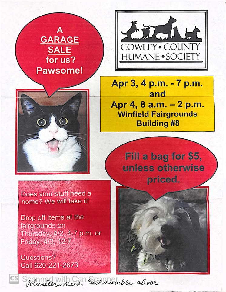 HomeFriendly Ford Hometown CalendarCCHS Annual Garage Sale CCHS Annual Garage Sale SHARE NOW Fri, Apr 3 at 4:00pm - Sat, Apr 4 at 8:00pm Winfield Fair Grounds Barn #8 More Information: Website: https://www.facebook.com/events/1642394613610264/?acontext=%7B%22event_action_history%22%3A[%7B%22mechanism%22%3A%22discovery_top_tab%22%2C%22surface%22%3A%22bookmark%22%7D]%2C%22ref_notif_type%22%3Anull%7D Add to My Calendar