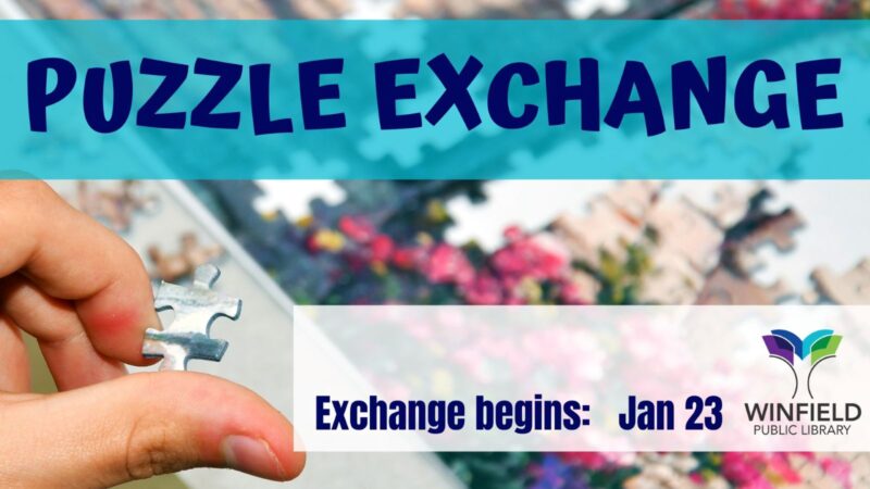 HomeFriendly Ford Hometown CalendarPuzzle ExchangePuzzle ExchangeSHARE NOW Fri, Jan 23 at 11:30am - Tue, Jan 27 at 8:00pm Winfield Public Library605 College Street, Winfield KSMap Add to My Calendar