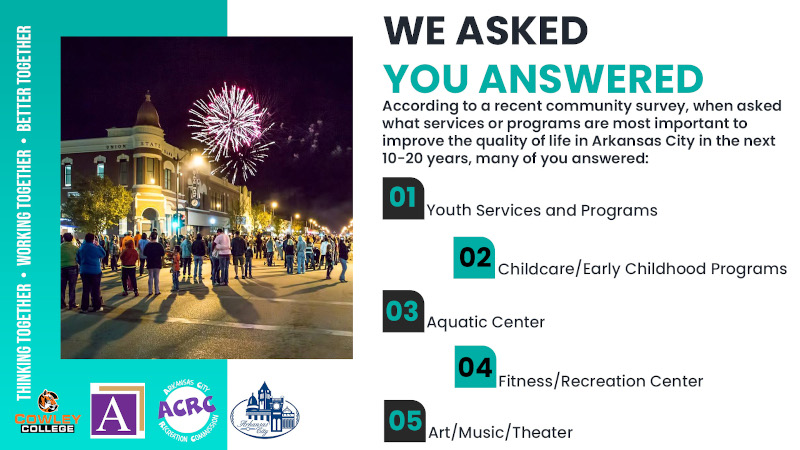 A recent Ark City community survey revealed local residents want an increased emphasis on infrastructure maintenance, childcare and early childhood programs, youth-related activities and more.