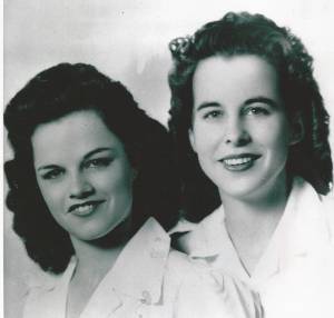 Above photo: Palmer twins at their 90th birthday celebration. Below photo: In their younger days