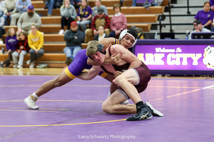 Ark City wrestling takes on Salina Central last week in Ark City. (Photo courtesy Larry Schwartz)